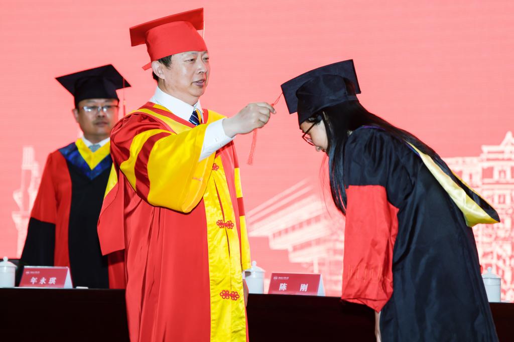 校党委副书记陈刚代表学校向圆满完成学业并顺利获得学位的各位同学表示热烈的祝贺,向辛勤培育他们的老师、父母、亲友表示衷心的感谢!他在讲话中指出,学校在习近平新时代中国特色社会主义思想指导下,紧紧围绕“培养德才兼备,能力卓越,自觉服务国家的骨干与领军人才”的人才培养总目标,深入实施“立德树人、能力导向和创新创业”三位一体的教育教学集成体系和第二课堂成绩单制度,“工程基础厚、工作作风实、创业能力强”的人才培养特色愈发彰显,“**一名领军人才”已成为学校创新人才培养的响亮品牌。