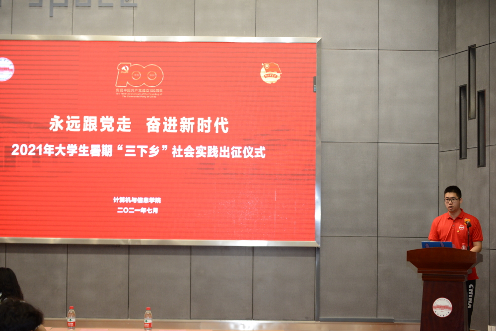 7月14日,37000cm威尼斯在大数据中心举办了2021年大学生暑期“三下乡”社会实践出征仪式,学院团委相关老师、相关年级辅导员、参加社会实践的全体同学参加了本次活动。