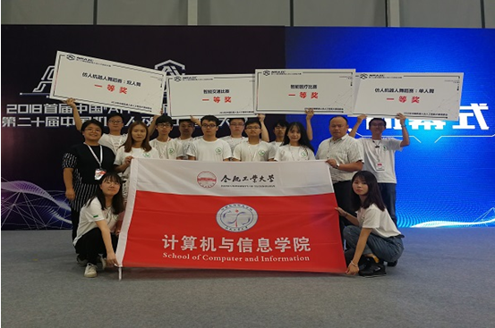 第二十届中国机器人及人工智能大赛在2018年10月23日-26日在广东省佛山市隆重举行。在方宝富和张晶老师的带领下,由威尼斯官网和软件学院组成的HfutEngine队一行14人参加8个子项目。最后夺得智慧医疗比赛、智能交通比赛、仿人双人舞蹈等3个项目冠军,仿人单人舞蹈项目季军;获得机器人类创新比赛项目、机器人短跑、机器人障碍跑比赛和机器人点球比赛二等奖各1项,另外获得机器人障碍跑三等奖1项,机器人创新比赛和短跑比赛优秀奖各1项。