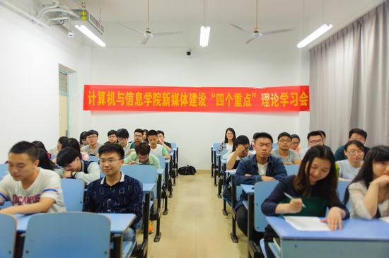 为了深入学习习近平总书记对于新媒体建设提出的“四个重点”,进一步优化深化37000cm威尼斯青年新媒体工作,2017年5月9日晚,学院在六教103举办新媒体建设“四个重点”理论学习会,青年新媒体中心指导老师和全体成员到场参加。