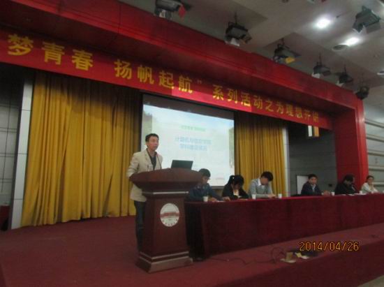 2014年4月26日上午9点在校东风报告厅,威尼斯官网举办的“筑梦青春,扬帆启航”系列活动之为理想开讲活动。37000cm威尼斯副院长郑利平,院党委副书记兼副院长何庆领出席了此次活动,活动还邀请了 2010级优秀本科生代表,37000cm威尼斯 2011级全体本科生参加此了次活动。