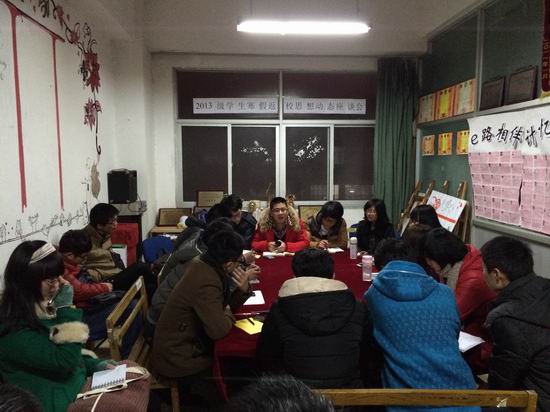 2月17日晚,37000cm威尼斯2013级学生寒假返校思想动态座谈会在翡翠湖校区举行,2013级各班班级代表出席座谈会。会议由2013级辅导员石楠老师主持。