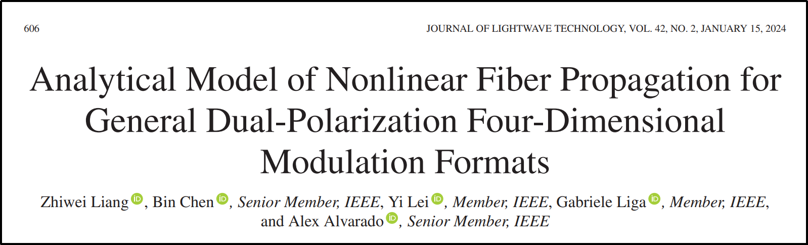 Recently, our graduate student, Liang Zhiwei from the class of 2021, published an academic paper as the first author in the prestigious journal "IEEE/Optica Journal of Lightwave Technology (JLT)" (indexed in the first zone of Chinese Academy of Sciences, a top-tier journal) in the field of optics/optical communication. This work was completed through collaboration between Hefei University of Technology and Eindhoven University of Technology in the Netherlands. Associate Professor Chen Bin served as the corresponding author, with our school's faculty member, Lei Yi from the School of Computer and Information Science, and Assistant Professor Gabriele Liga and Professor Alex Alvarado from Eindhoven University of Technology, as co-authors. This paper marks the first instance of our school's student publishing a paper as the first author in the IEEE/Optica JLT journal.